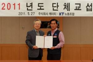 [소비자경제=손완호기자] KT(회장 이석채)와 KT노동조합(위원장 김구현)은 1개월간의 협상 끝에 2011년도 단체 교섭을 타결하면서 지난 2001년부터 11년 연속 무분규 단체 교섭을 달성했다고 29일 밝혔다.