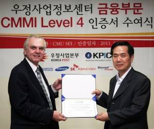 [소비자경제=윤상천 기자] 지식경제부 우정사업본부(본부장 김명룡)는 국내 공공분야 최초로 우체국 금융부문이 국제 소프트웨어 및 정보기술 품질인증 기준인 CMMI(Capability Maturity Model Integration) 레벨 4 인증을 획득했다고 25일 밝혔다.