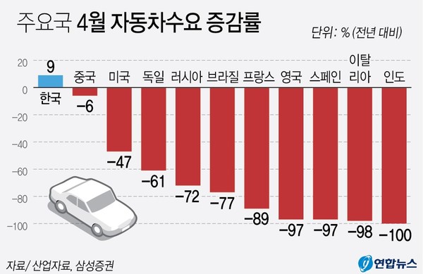산업통상자원부 이민우 자동차항공과장은 “올해 1~5월 기준 미국(23.2%)·중국(22.7%)·일본(19.2%) 등의 자동차 내수가 모두 급감한 것에 비하면 우리나라는 증가(0.3%)했다”고 설명했다.