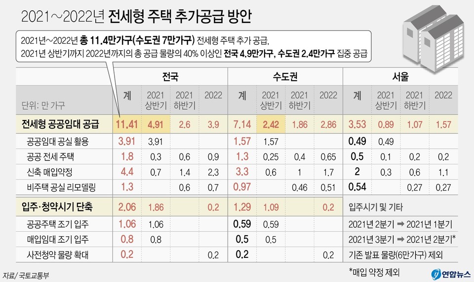 정부가 전세난을 해결하기 위해 3개월 이상 공실인 공공임대를 무주택자라면 소득 수준에 관계 없이 입주할 수 있도록 할 계획이다. 민간건설사와 매입약정을 통해 다세대, 오피스텔 등 신축 건물을 사전에 확보해 서둘러 공공임대로 공급하고 공공전세라는 새로운 유형의 임대주택도 내놓는다.