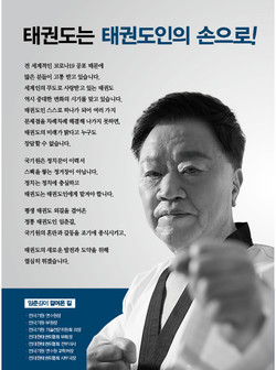 “신종 코로나바이러스 감염증(코로나19) 공포로 많은 분들이 고통받고 있습니다. 세계인의 무도로 사랑받고 있는 태권도 역시 중대변화의 시기에 와 있습니다. 태권도인 스스로 하나가 되어 문제점을 해결해야 합니다. 태권도는 태권도인에 맡겨야 합니다. 평생 태권도 외길을 걸어온 저는 국기원의 혼란과 갈등을 조기에 종식시키고 태권도의 새로운 발전과 도약을 위해 열심히 뛰겠습니다.”