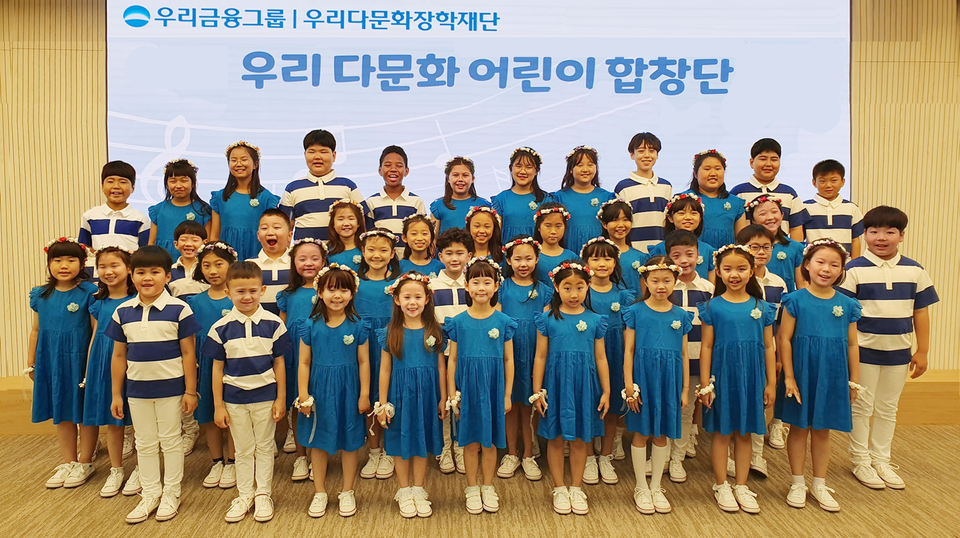 우리다문화장학재단은 2012년 우리은행 등 우리금융그룹 그룹사가 200억원을 출연해 설립한 공익재단으로 장학금 지원 및 교육·문화·복지사업을 활발히 펼치고 있다. 2012년 창단된 금융권 최초의 다문화 어린이 합창단인 ‘우리다문화어린이합창단’은 국내 다문화가정 자녀들의 인성교육 및 문화·예술분야 미래인재 육성을 위해 우리다문화장학재단에서 진행하는 대표적인 사회공헌 사업이다.