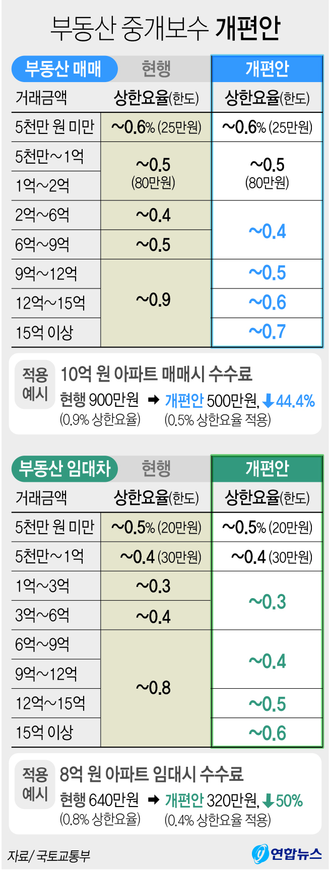 우리나라 부동산거래 중 90% 이상을 차지하는 6억원 미만의 부동산 중개수수료는 왜 인하되지 않았나? 지나친 복비로 어려움이 가중되는 소비자가 가장 많은데도 정부는 왜 6억원 미만 거래자를 외면한 것인가?