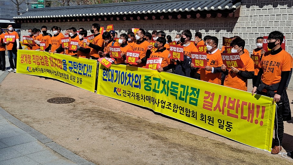 현대차 등 국내 완성차 기업의 중고차시장 진입이 확정되고 중고차 판매업이 생계형 적합업종 지정이 종료되면서 기존 중고차업계가 단체 행동에 나섰다.