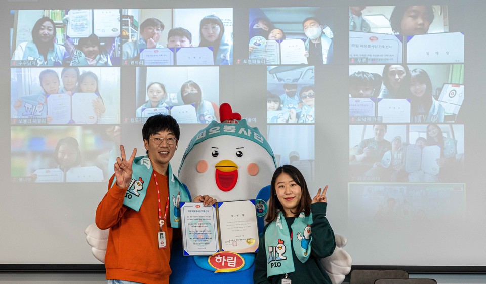 온라인으로 진행된 이번 발대식에는 ‘피오봉사단 9기’로 선정된 소비자 가족 10팀과 하림 임직원 가족 봉사단 10팀이 참여했다. 최근 새로 취임한 하림 정호석 대표가 피오봉사단 단장을 맡아 피오봉사단 9기 가족들을 환영했다.