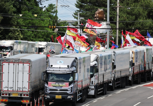 앞서 하이트진로 화물 운송 위탁사인 수양물류 소속 화물차주 130여 명은 지난 3월 민주노총 산하 화물연대에 가입한 뒤 운송 거부 등을 통해 파업을 이어왔다. 지난 2일부터는 하이트진로 이천공장과 청주공장의 물류 운송을 막아서고 있다.