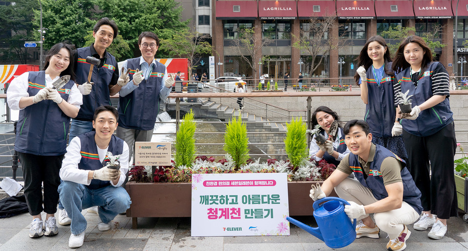 세븐일레븐은 지난 8일 서울 청계천 청계광장 인근에 꽃 화단을 조성하는 ‘꽃 피는 청계천’ 활동을 펼쳤다고 9일 밝혔다.