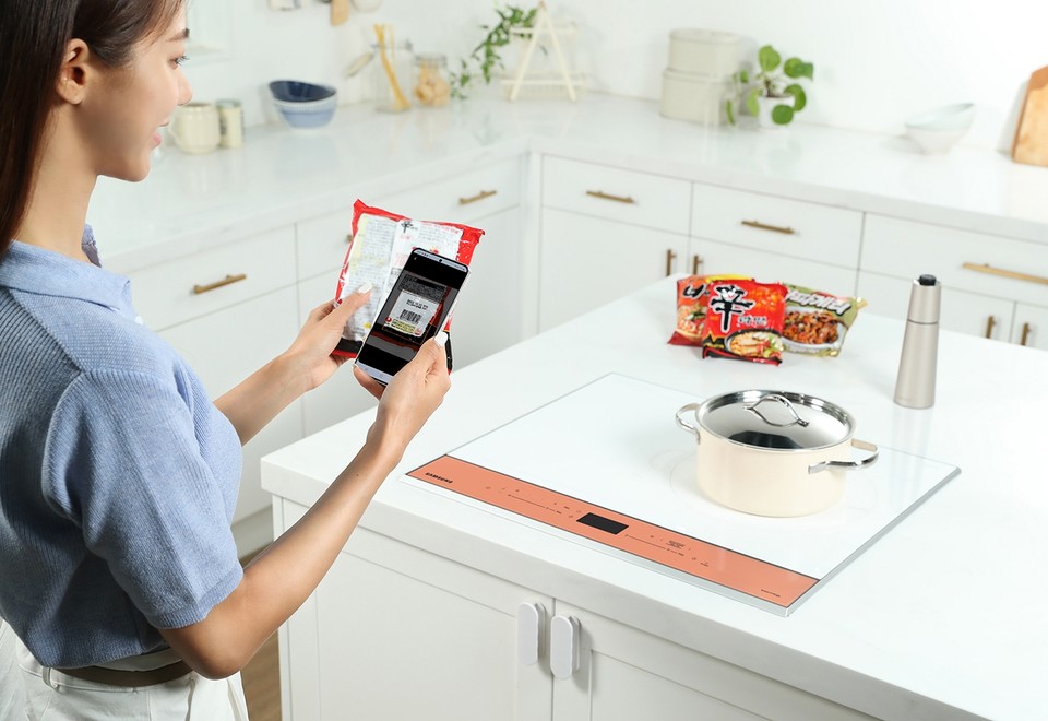 농심은 신라면과 짜파게티, 너구리 등 13개 제품의 바코드를 비스포크 인덕션의 ‘스캔쿡’ 기능과 연동시켰다. 삼성 스마트싱스 앱으로 바코드를 스캔하면 최적의 온도와 시간이 설정되며 조리 순서대로 안내 멘트가 나온다. 이에 따라 조리하면 가장 맛있는 라면을 맛볼 수 있다.
