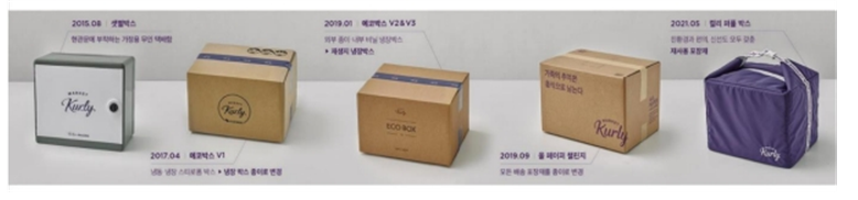 마켓컬리가 사용하는 종이 포장재는 내부 패키징팀에서 2016년부터 연구하고 실험을 거쳐 지속적으로 업그레이드하고 있는 친환경 보냉박스다. 마켓컬리에 따르면 친환경 보냉박스는 100% 재활용 가능한 종이로 제작된다.