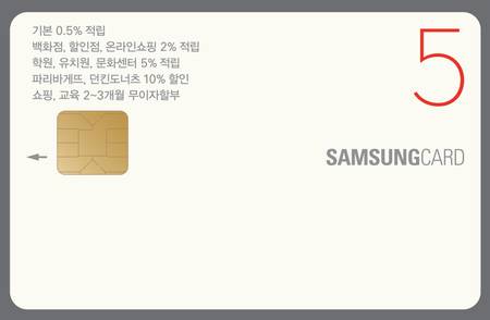 삼성카드 관계자는 “삼성카드는 쇼핑, 자녀교육 등에 관심이 많은 회원들을 대상으로 쇼핑 및 교육업종에서 다양한 혜택을 제공하는 삼성카드 5를 출시하였다”며“앞으로도 고객이 이해하기 쉽고 고객에게 꼭 필요한 서비스를 제공하는 다양한 숫자카드를 선보여 나갈 계획이다”고 밝혔다.