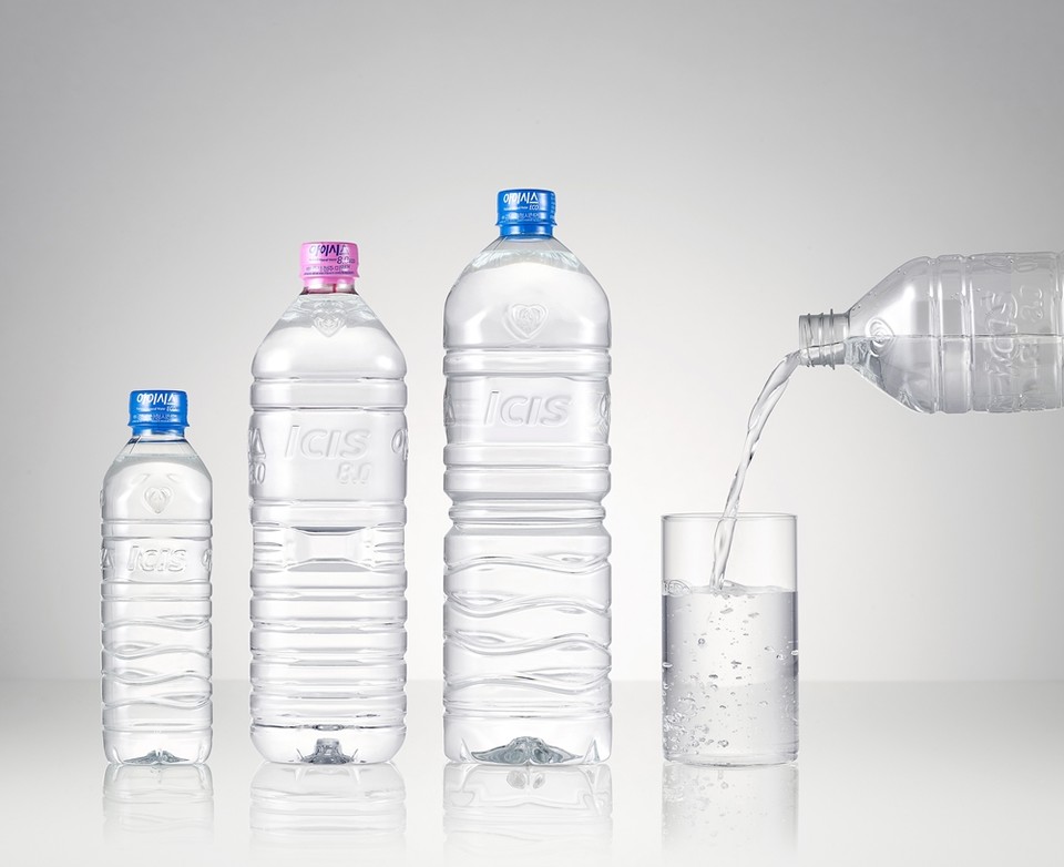 롯데칠성음료는 최근 대표 먹는샘물 브랜드 아이시스8.0의 200 및 300mL 페트병 몸체 무게를 약 10% 줄인 경량화 용기를 선보이며 환경을 위한 플라스틱 다이어트에 나섰다.