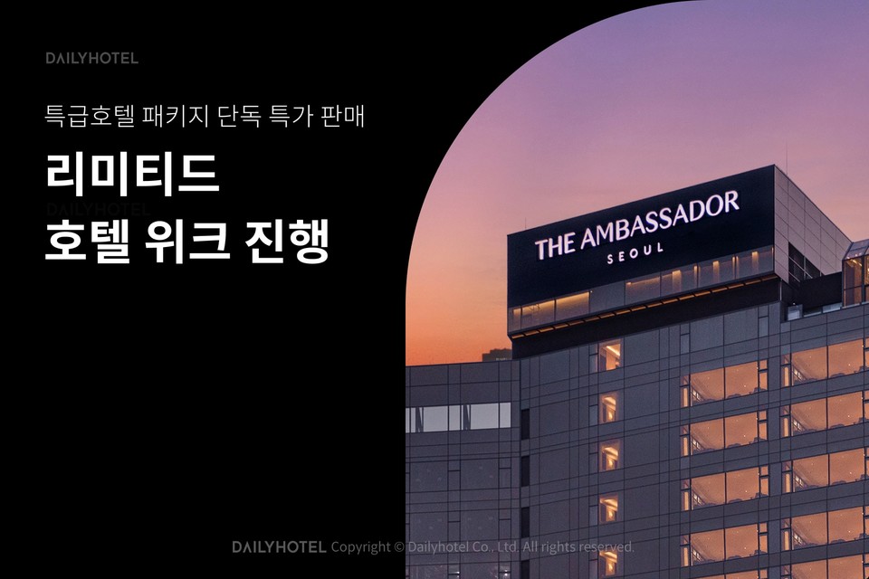 데일리호텔은 오는 17일까지 진행되는 첫 리미티드 호텔 위크를 통해 앰배서더 서울 풀만을 특가로 선보인다. 디럭스 객실 업그레이드 및 부대시설 이용 혜택을 더한 패키지와 앰배서더 스위트 객실에 클럽 앰배서더 라운지 2인 이용권을 포함한 단독 패키지를 최대 63% 할인가로 판매한다.