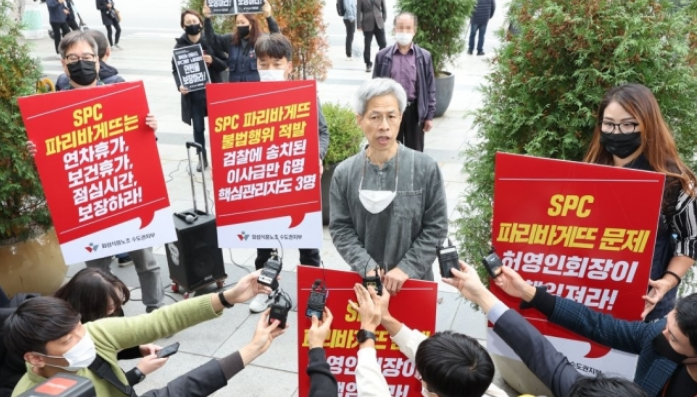 이날 오전 SPC 건물 주변에는 민노총 화섬식품노조 관계자들이 다수 모였다. 이들은 “본사나 매장 앞 집회, SPC그룹 및 계열사에서 1인 시위 등을 할 경우 간접강제금 100만원을 집행하게 해달라고 법원에 요구해왔다”며 시위를 벌였다.