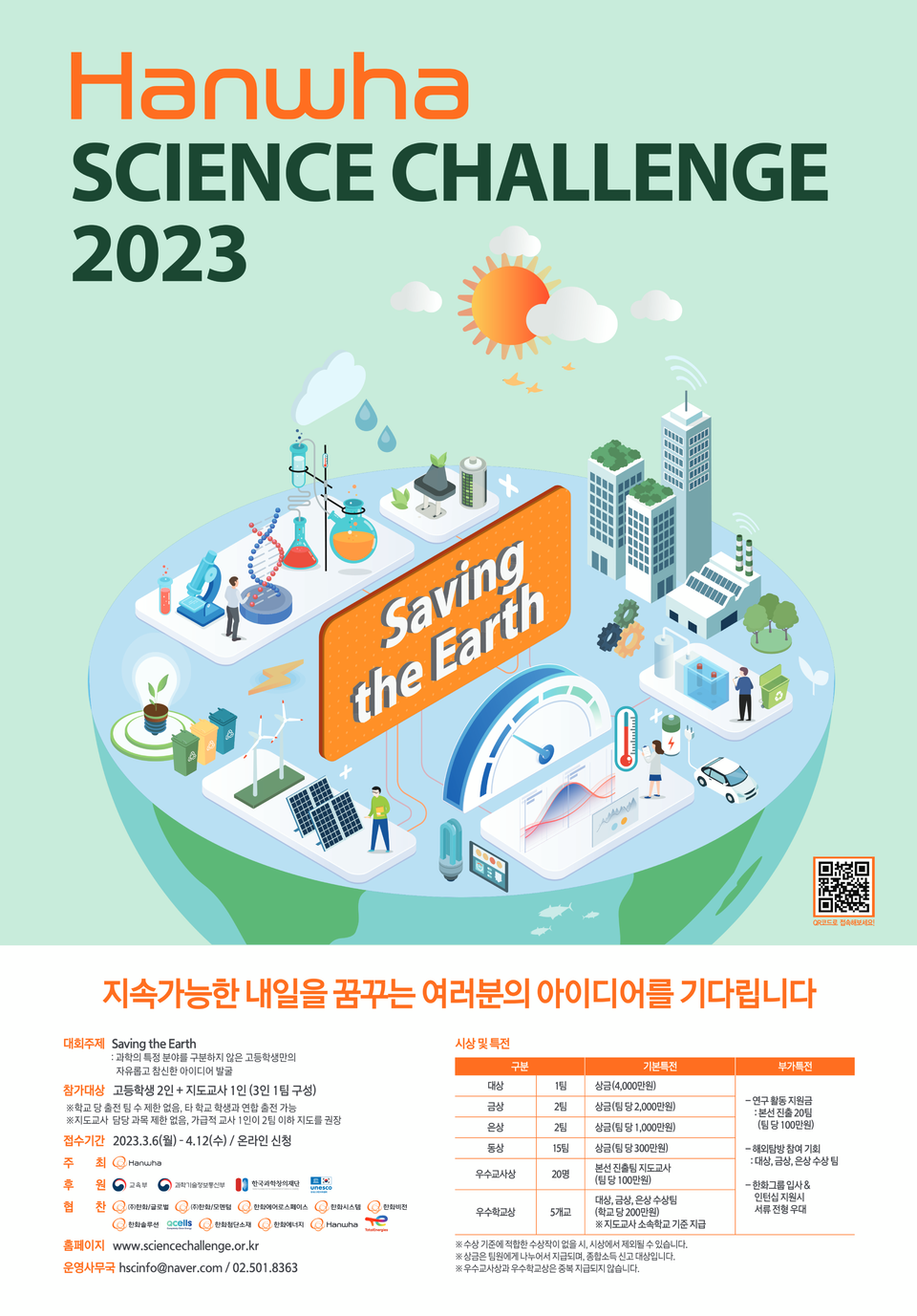 한화그룹이 지속 가능한 내일을 만들어갈 과학 꿈나무 육성 대회인 ‘한화사이언스챌린지(Science Challenge) 2023’을 개최한다.