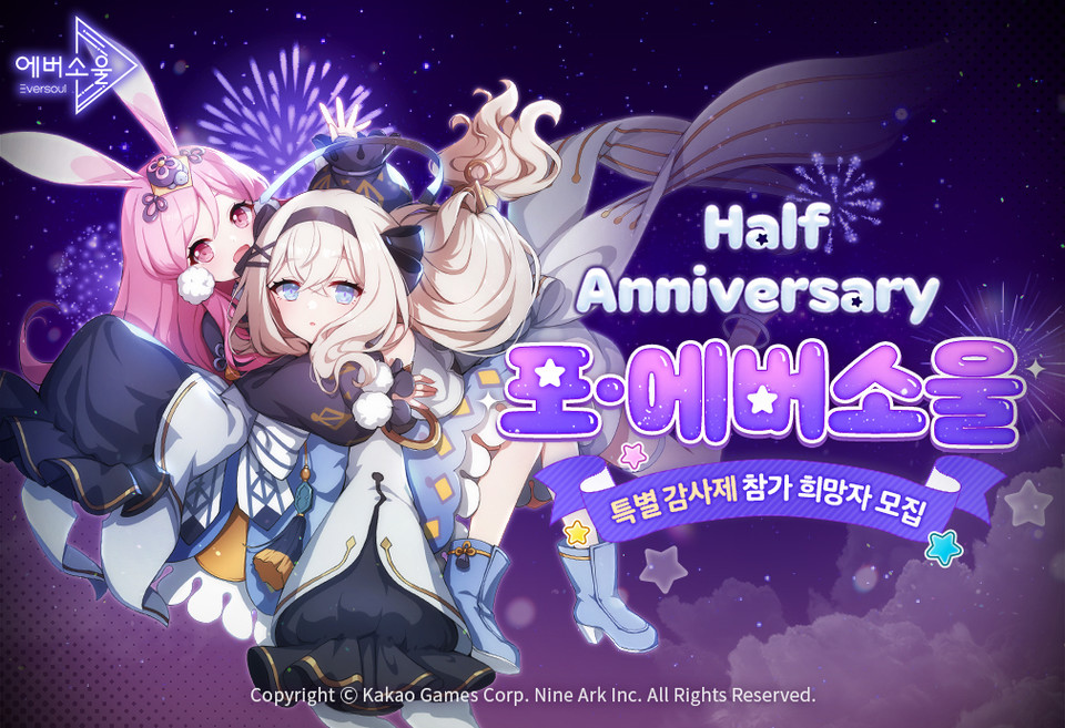 한편 카카오게임즈는 에버소울의 반주년 서비스를 기념해 ‘하프 애니버서리’ 사전등록 이벤트를 시작했다.