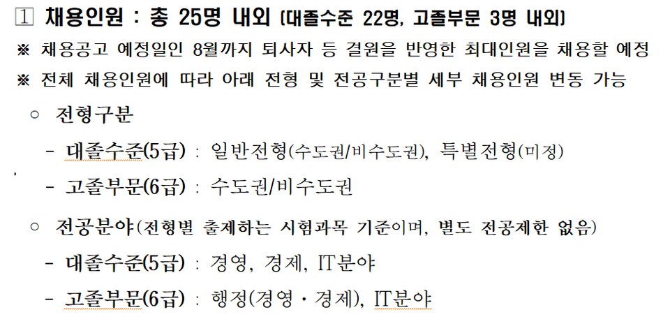HF공사는 오는 8월 중 모집공고를 실시해, 총 25명 내외의 신입직원을 채용할 계획이다. 전년 대비 중요 변경사항은 ▲(서류전형)적부심사 실시 ▲(대졸수준 필기전형)금융경제상식 폐지 및 NCS 직업기초능력평가 도입 ▲(1차면접)토론면접 폐지 등이다.