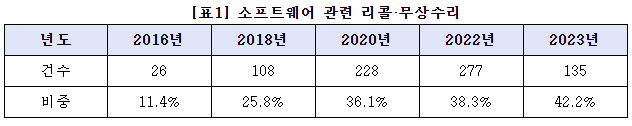 소비자주권은 지난달 자동차 SW의 결함이 늘었다는 언론 보도를 인용해 10년 전까지만 해도 10건의 결함 중 SW 문제는 1건 이하에 불과했지만, 최근에는 4~5건으로 늘어났다고 전했다. 해당 보도 내용에 따르면, 최근 10년 SW 관련 사후조치 건수는 2012년 6건에서 지난해 277건으로 46배 증가했으며 같은 기간 전체 사후조치 건수 중 SW 문제가 차지하는 비중도 7.5%에서 38.3%로 크게 늘었다. 또 올해 1~5월에는 총 320건의 사후조치가 취해졌는데, 이 가운데 SW 관련 조치는 135건(42.2%)으로 집계됐다.