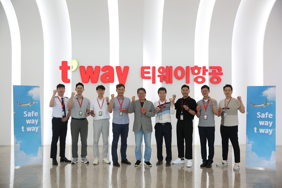 정홍근 티웨이항공 대표이사는 슬로건 키링을 운항 승무원에게 직접 전달하며 “철저한 안전의식을 바탕으로 안전운항에 나서주길 바란다”고 당부했다.