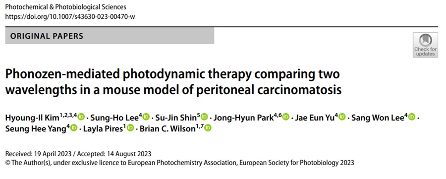특히 이번 연구결과는 PDT의 세계적인 석학인 브라이언 윌슨 교수(Brian C. Wilson)가 교신저자로 되어 있어, 관련 학계의 많은 관심이 집중될 것으로 보인다.