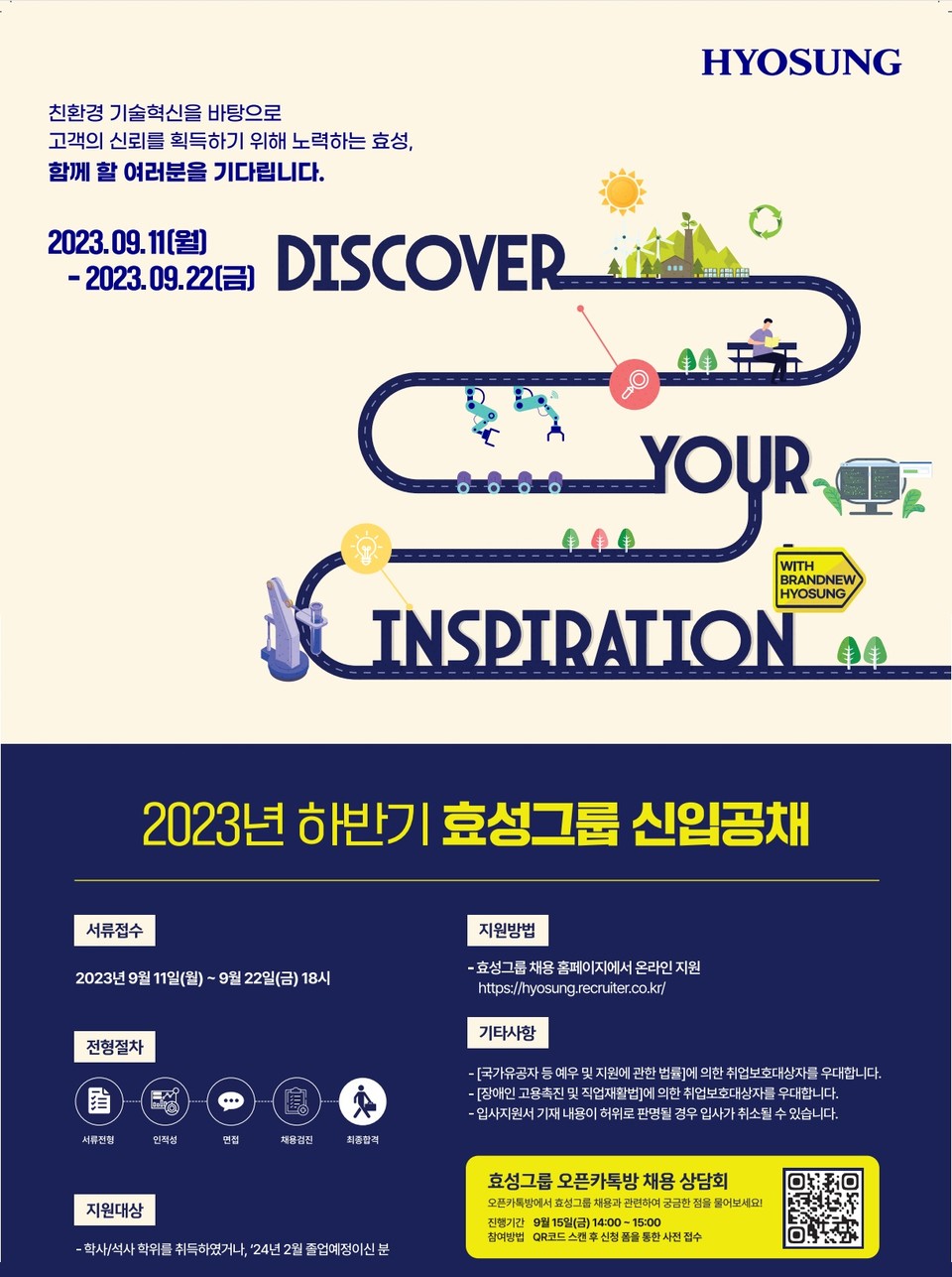 [소비자경제=권찬욱 기자] 효성그룹이 2023년 하반기 대졸 신입사원 공개 채용을 실시한다.