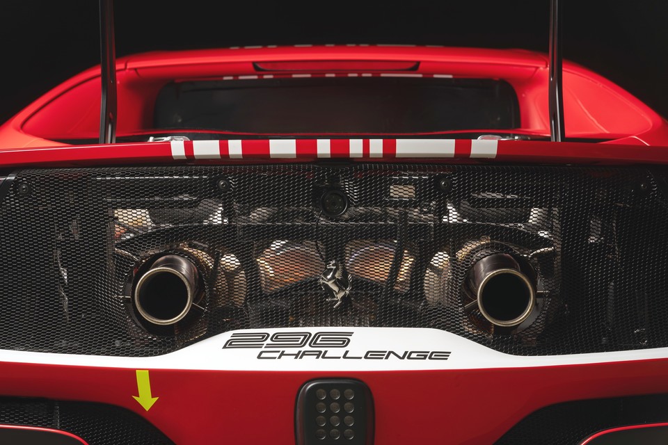 296 챌린지는 페라리 원메이크 시리즈 최초로 V6 엔진을 탑재한 차량이다. 지금까지 챌린지에 사용된 모델들은 모두 V8 엔진을 장착했다. 296 GTB와 비교해 가장 큰 변화는 296 GT3처럼 하이브리드 파워트레인을 제거했다는 점이다. 이를 통해 차량의 무게를 줄이면서도, 출력을 700마력(cv)으로 높여 리터당 출력 234마력이라는 해당 세그먼트 신기록을 세웠다.