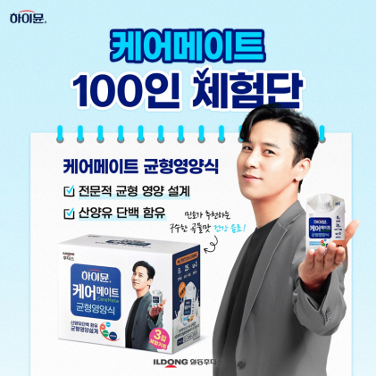 [소비자경제=최지우 기자] 일동후디스 하이뮨 케어메이트가 오는 18일까지 100명의 체험단을 모집한다.
