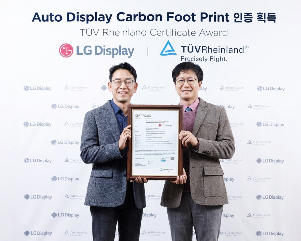 LG디스플레이는 25일 차량용 OLED 제품군이 글로벌 검사·인증기관 티유브이 라인란드(TUV Rheinland)로부터 차량용 OLED 최초로 ‘제품 탄소발자국(PCF)’ 인증을 획득했다고 밝혔다.