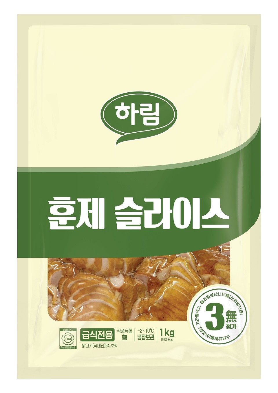 하림의 ‘훈제 슬라이스’는 국내산 100% 닭다리살을 참나무로 훈연해 깊은 풍미를 더하고 풍부한 육즙을 그대로 가뒀다. 닭다리살 특유의 부드럽고 쫄깃한 식감을 살리고 기름기는 쫙 빼 담백한 맛이 특징이다. 샐러드나 볶음 등 학생들이 좋아하는 다양한 급식 메뉴에 폭넓게 활용될 것으로 기대된다.
