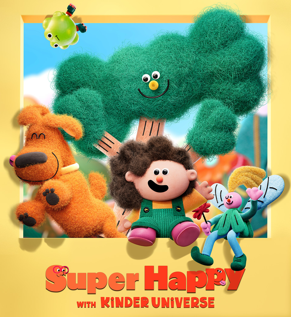 이번 ‘슈퍼해피’ 테마 기간 동안 만나볼 수 있는 ‘킨더유니버스’는 롯데백화점 키즈관 브랜드로 상상의 숲속에서 노는 아이와 동식물, 장난감 등이 어우러진 어린이들을 위한 세계관을 의미한다. 불안과 걱정을 먹는 이끼인 ‘모가나’, 척척박사 덩쿨 ‘더스틴’, 미래형 로봇 ‘스티븐’, 무계획의 귀여운 요정 ‘루카’ 등 총 9종의 캐릭터가 등장한다.