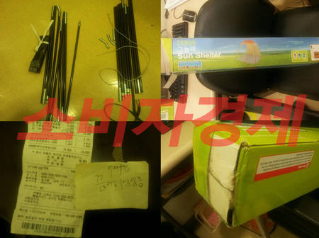 그리고 목적지에 도착한 김 씨와 친구들은 그늘막 텐트 설치를 위해 한참동안 애를 썼지만 중심축이 맞지 않았다. 처음 설치 해보는 것이라 미숙해서라고 판단했지만 결국 설치를 포기했다. 김 씨는 제품을 다시 박스에 넣으려 한 순간 황당함을 감출 수 없었다. 이미 판매됐다가 제품의 하자로 인해 반품된 것으로 추정되는 내용의 쪽지를 하나 발견한 것.
