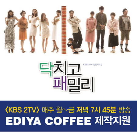 [소비자경제=방미선 기자] ㈜이디야 커피가 KBS 2TV 일일시트콤 ‘닥치고 패밀리’ 제작 지원 마케팅에 나선다.