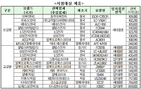 | ▲ [한국소비자원이 진공청소기의 주요 성능을 조사한 결과 가격이 비싸다고 주요 성능이 꼭 우수한 것만은 아닌 것으로 밝혀졌다.] | ||