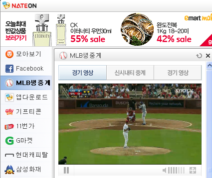 | ▲ SK커뮤니케이션즈은 지난 7일부터 기존의 네이트닷컴 뿐만 아니라 네이트온 메신저에서도 MLB 생중계 서비스를 시작했다. | ||