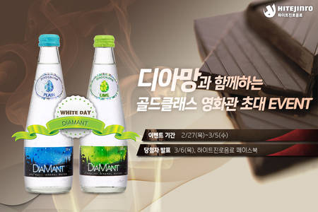 하이트진로음료는 화이트데이를 앞두고 프리미엄 탄산수 '디아망과 함께하는 골드클래스 영화관 초대' 이벤트를 진행한다.
