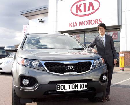 기아자동차는 10일 영국 잉글랜드 그레이터 맨체스터주 볼턴에 위치한 딜러샵 ‘볼턴 기아’에서 이청용 선수, 허 수 기아차 영국판매법인장 등이 참석한 가운데 이 선수가 영국 활동시 이용할 ‘쏘렌토R’을 전달했다.