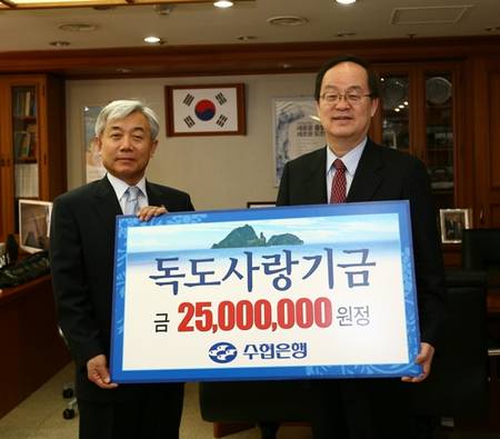 [CEO와소비자] 독도후원은행으로 지속적인 활동을 벌이고 있는 수협은행은 17일 한.일 강제병합 100년째를 맞이해 독도연구보전협회에 ‘독도사랑海기금’ 2500만원을 전달했다.