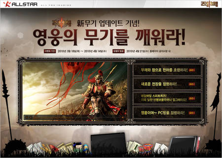 '적벽'은 업데이트를 통해 무기 2종과 전장 3종 및‘스피드퀴즈 이벤트’를 추가 공개하면서 유저들에게 더욱 다양한 즐길 거리를 제공했다.