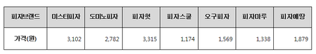그러나 해당 가격대에 속하지 않는 프리미엄 피자(L)는 미스터피자 3개, 도미노피자 2개, 피자헛 1개에 불과했다.