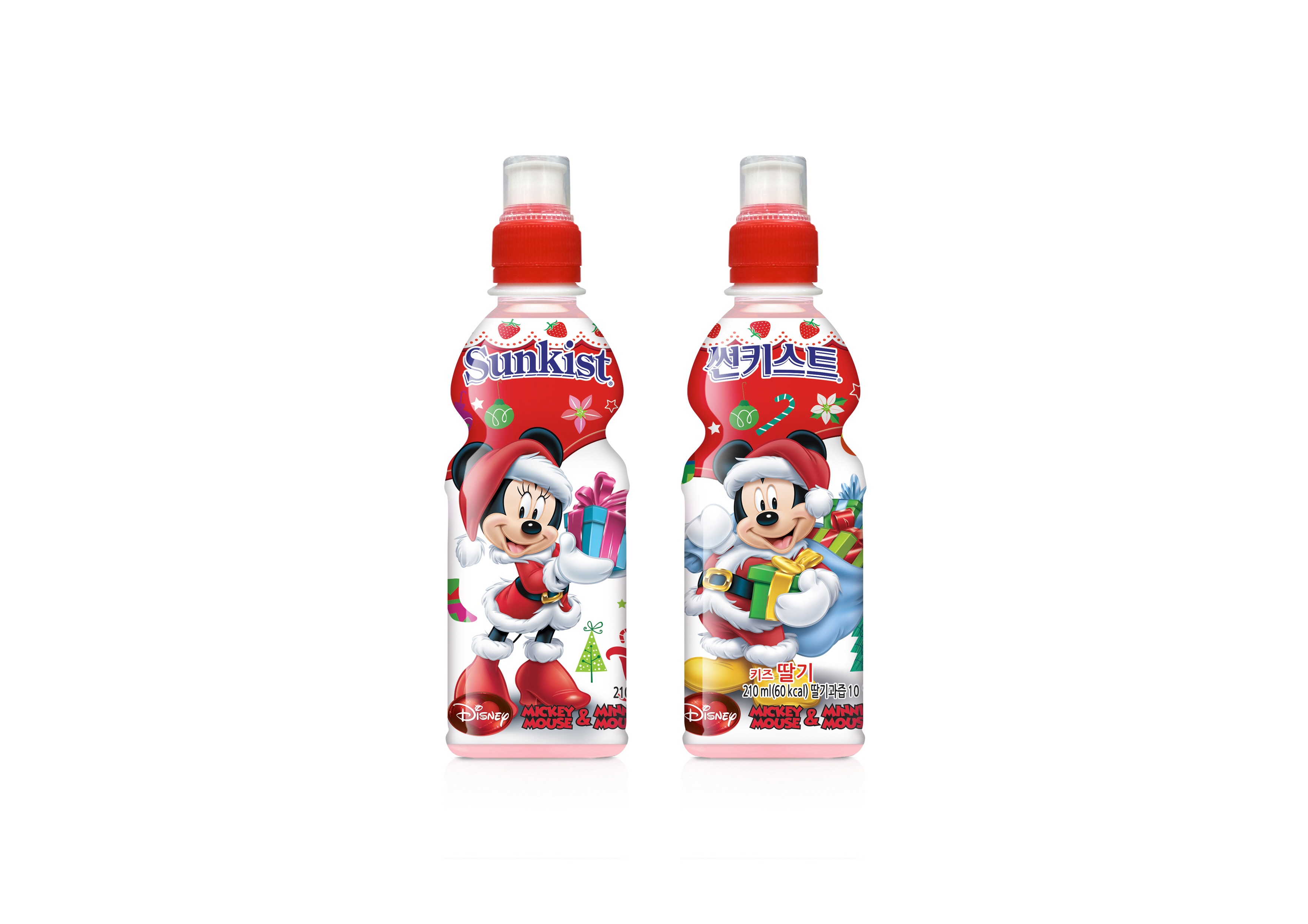 크리스마스 한정판으로 판매되는 ‘썬키스트 키즈’ 과즙음료는 기존 제품의 라벨을 크리스마스 느낌이 물씬 풍기는 산타클로스 복장의 미키미니와 겨울왕국의 올라프 캐릭터로 변경하여 한정물량으로 판매한다.