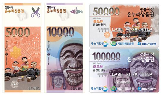 온누리상품권은 2009년부터 중소기업청과 소상공인시장진흥공단이 전통시장과 상점가를 활성화시키기 위해 발행하고 있으며, 이는 전국 전통시장 및 상점가의 온누리상품권 가맹점에서 현금처럼 쓸 수 있다.