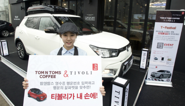 전국 탐앤탐스 매장에서 QR코드 활용해 응모… 추첨 통해 ‘티볼리’ 등 푸짐한 경품 제공