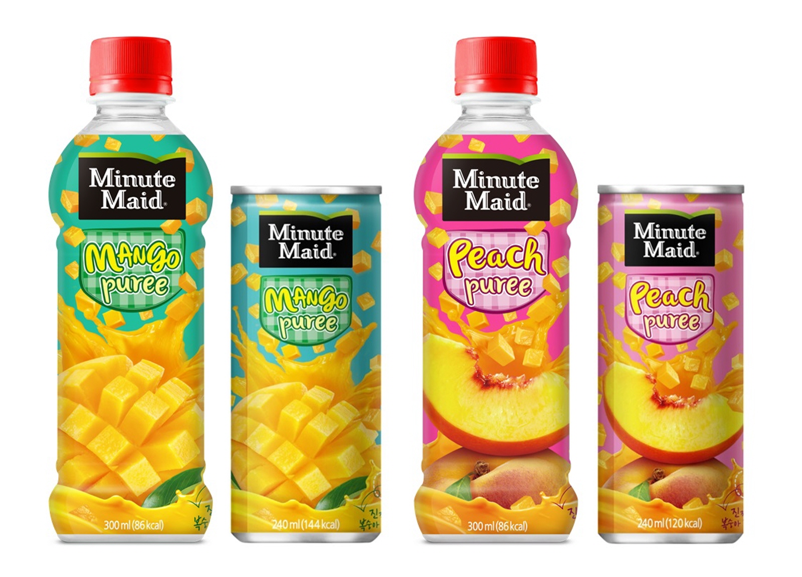 ‘미닛메이드 망고 퓨레’, ‘미닛메이드 복숭아 퓨레’ 제품은 편의점과 할인점, 체인점, 식품점에서 만나볼 수 있으며 가격은 240ml 캔 1000원, 300ml 페트 1600원이다.