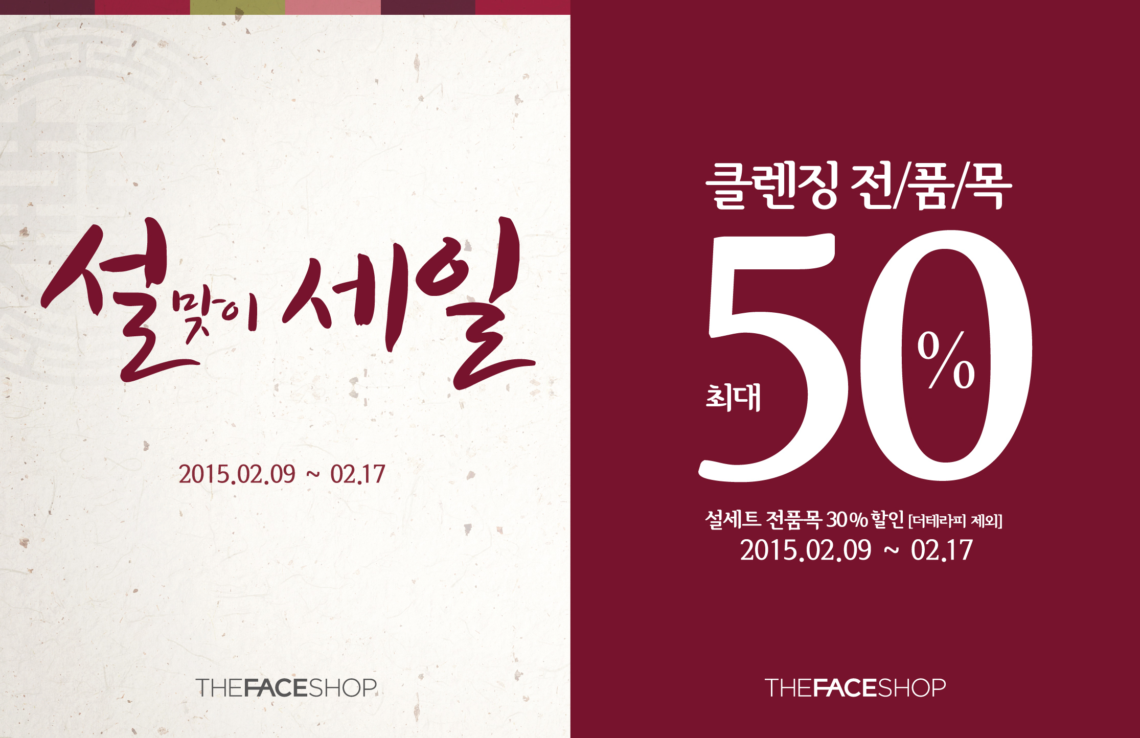 [소비자경제=고유진 기자] 더페이스샵은 민족의 대명절 설을 맞아 2월 9일부터 9일 간 품목별 할인하는 ‘설 맞이 Sale’을 진행한다고 밝혔다.