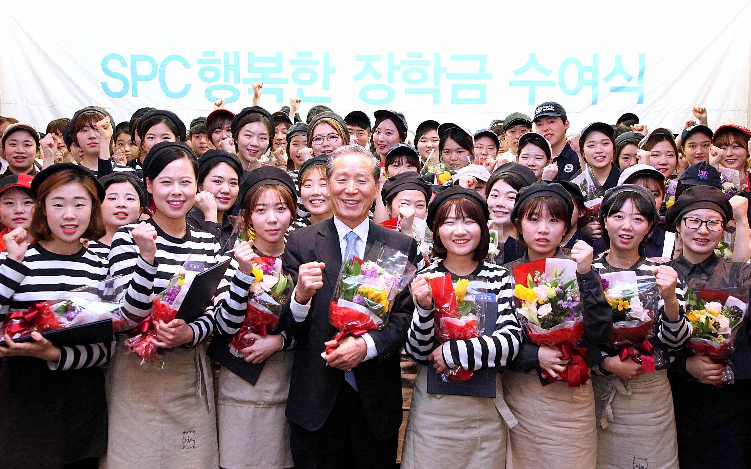 SPC행복한장학금은 파리바게뜨, 배스킨라빈스, 던킨도너츠 등 SPC그룹 매장에서 근무하는 아르바이트 대학생 중 매년 200여 명(1학기당 100여 명)을 선발해 등록금의 절반을 지원하는 것으로 “매장에서 일하는 젊은이들이 꿈을 키울 수 있도록 지원하라”는 허영인 SPC그룹 회장의 주문으로 마련한 제도다.