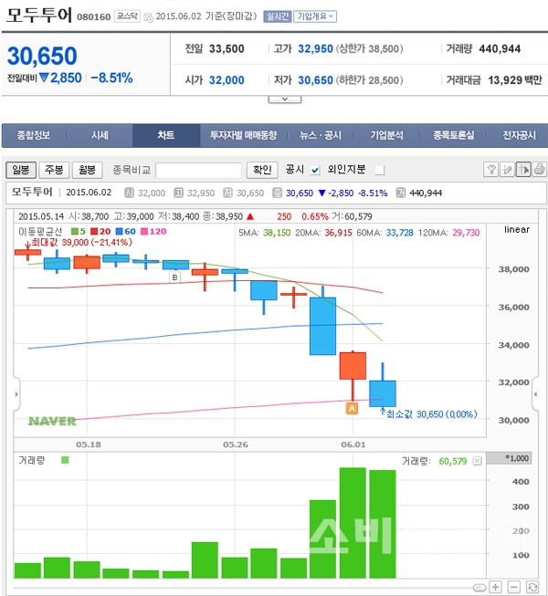 모두투어도 비슷한 상황이다. 모두투어의 주가는 전일대비 8.51% 떨어진 3만650원으로 마감하며 하락세를 면치 못했다. 모두투어는 5월14일 3만8,950원까지 주가가 올랐지만 국내 메르스 환자 발생 이후 22% 이상 주가가 떨어졌다. 롯데관광개발 역시 주가가 12.1% 떨어지며 메르스 공포를 피하지 못했다.