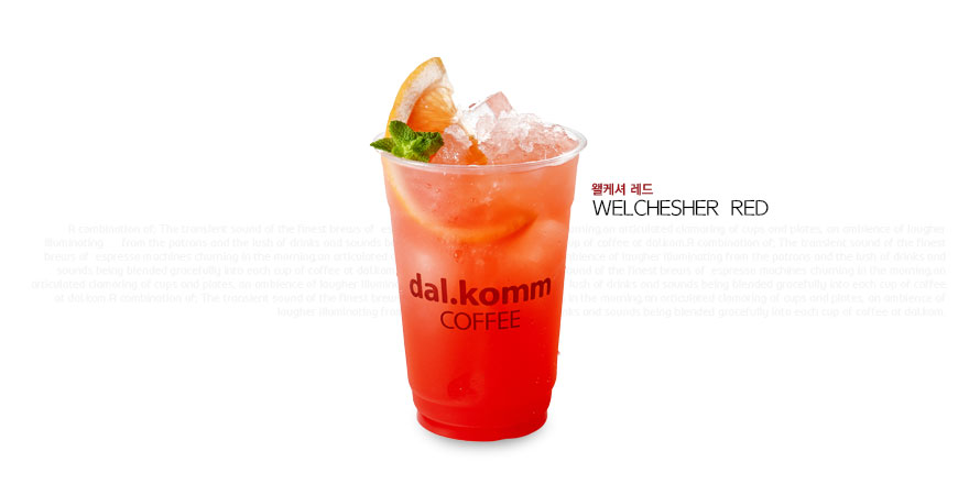 달콤커피의 신메뉴 '왤케셔(Welchesher)'는 열대과일 '칼라만시'를 원료로 만든 에이드 음료로 신맛의 강도에 따라 블루, 그린, 레드의 3가지 맛으로 구성되어 있다.