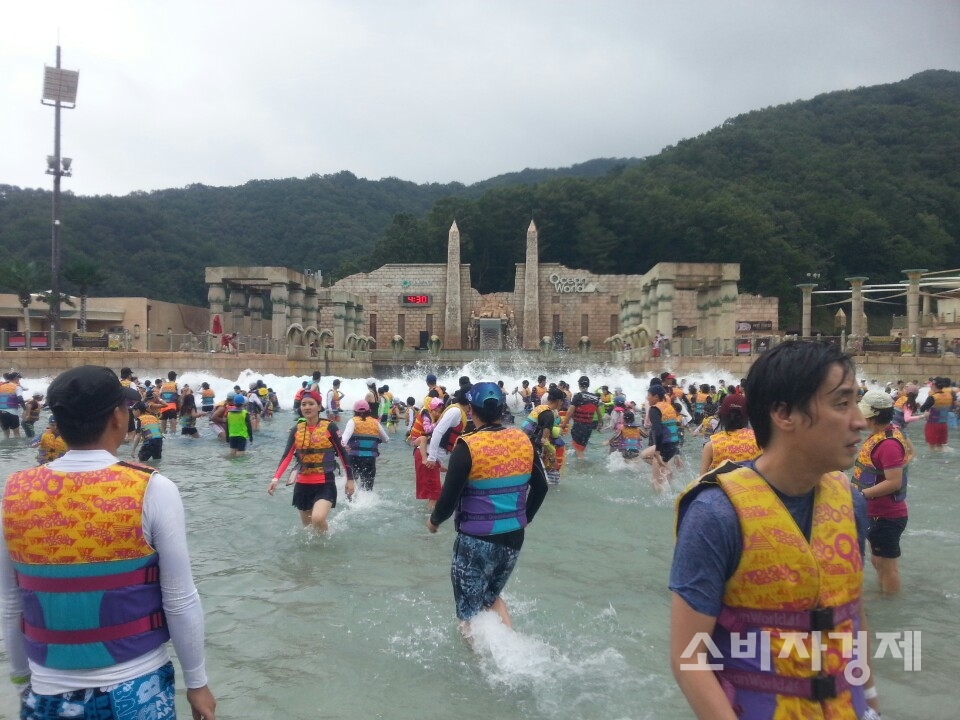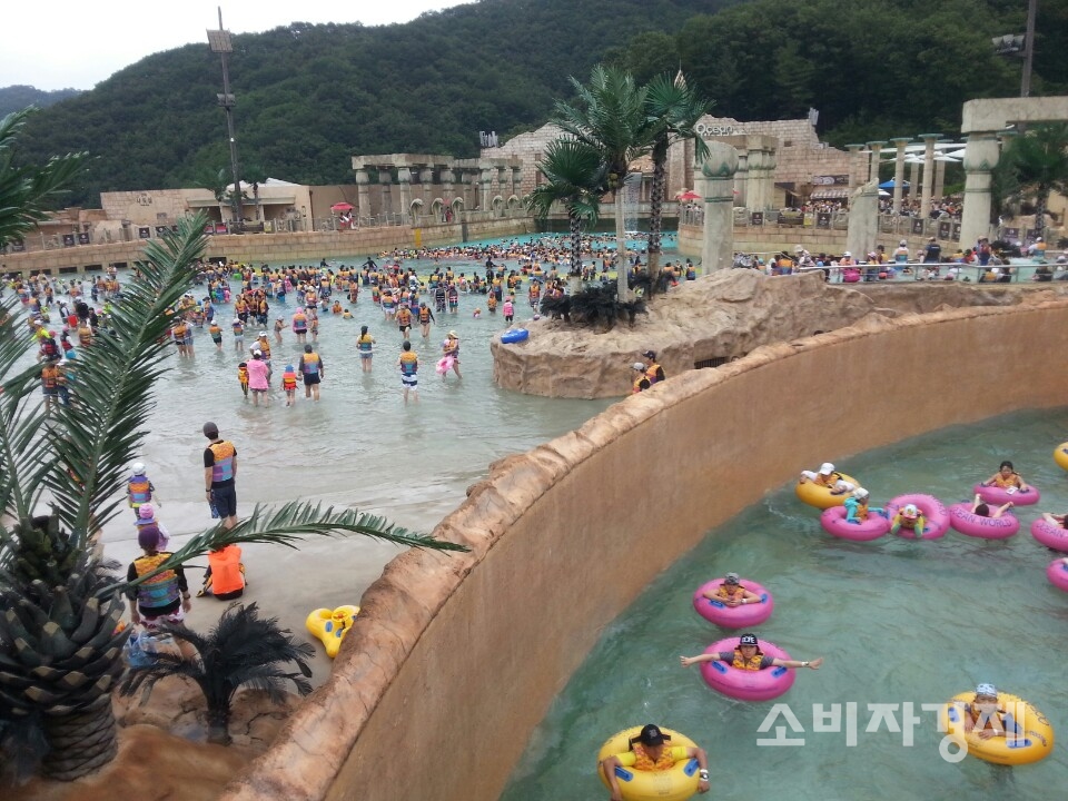 [소비자경제=정명섭 기자] 27일 여름 휴가를 맞아 많은 피서객들이 강원도 홍천군에 위치한 오션월드를 찾았다. 장마전선의 영향으로 흐린 날씨지만 물놀이를 즐기는 사람들은 여유와 즐거움으로 가득한 모습이다.