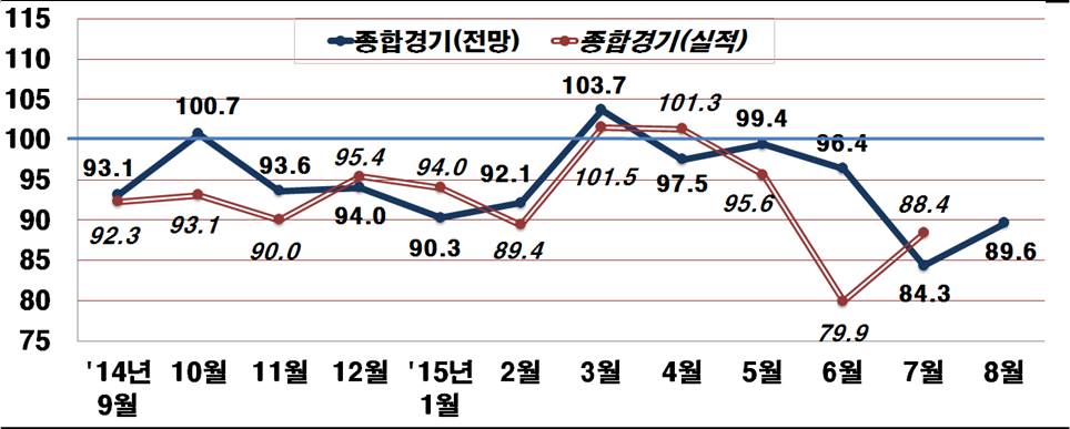 전망치가 기준선을 하회한 데에는 메르스 영향, 중국 금융시장 불안, 하계휴가 영향 등의 요인이 반영된 것으로 보인다.