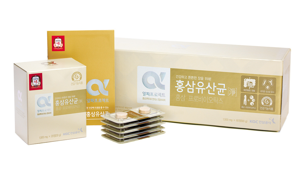 홍삼유산균은 홍삼과 프리미엄 건강기능소재를 결합한 알파 프로젝트의 일환으로 정관장 6년근 홍삼과 유산균을 과학적으로 배합한 식품이다. 또한 이 제품은 간편하게 씹어 먹을 수 있는 정제형의 개별포장으로 휴대와 섭취의 편의성을 높였다고 KGC인삼공사가 전했다.