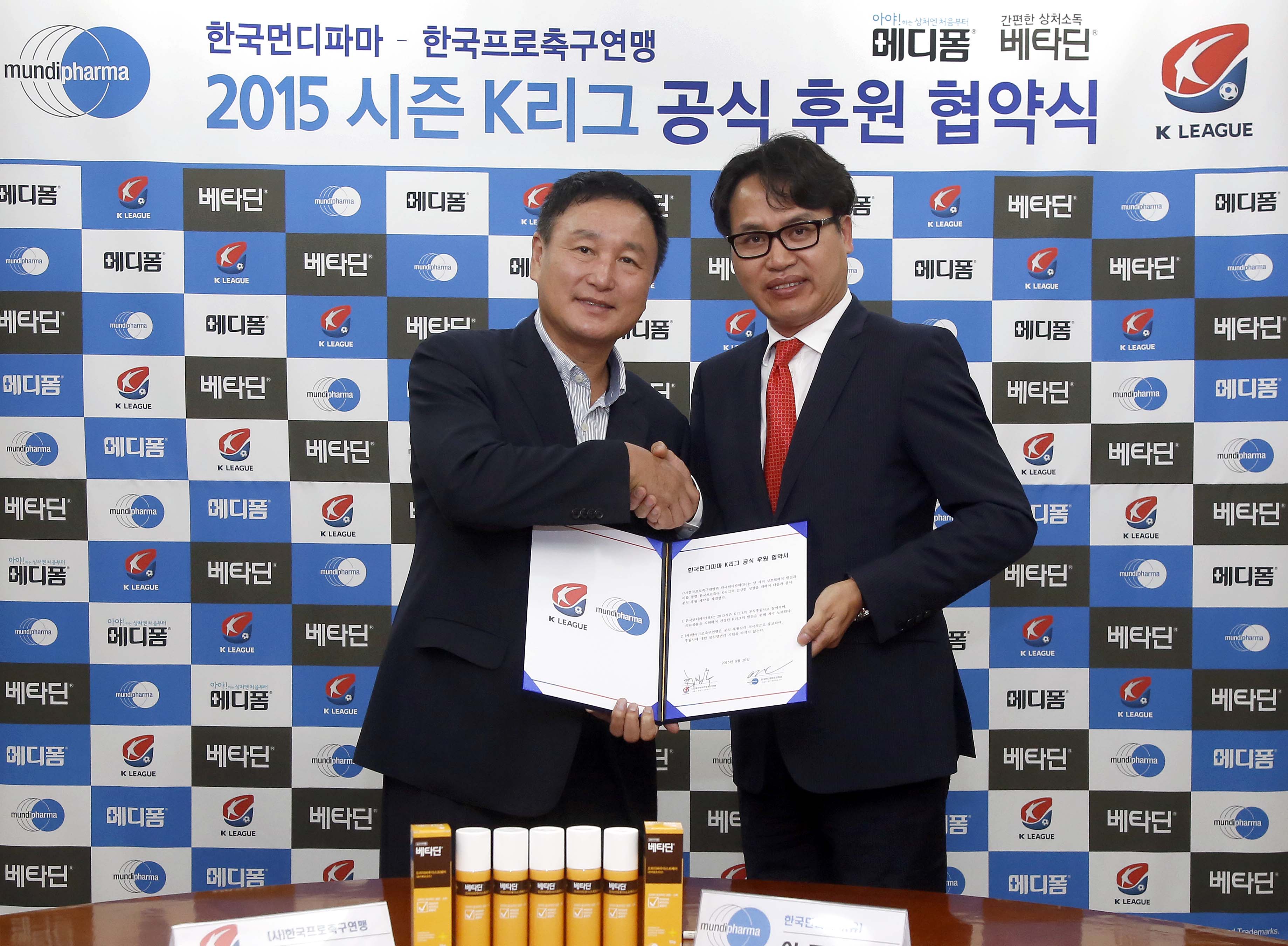한국먼디파마는 20일 서울 종로구 신문로에 위치한 축구회관 5층 집현전에서 K리그 공식 후원에 대한 계약을 체결했다고 밝혔다.